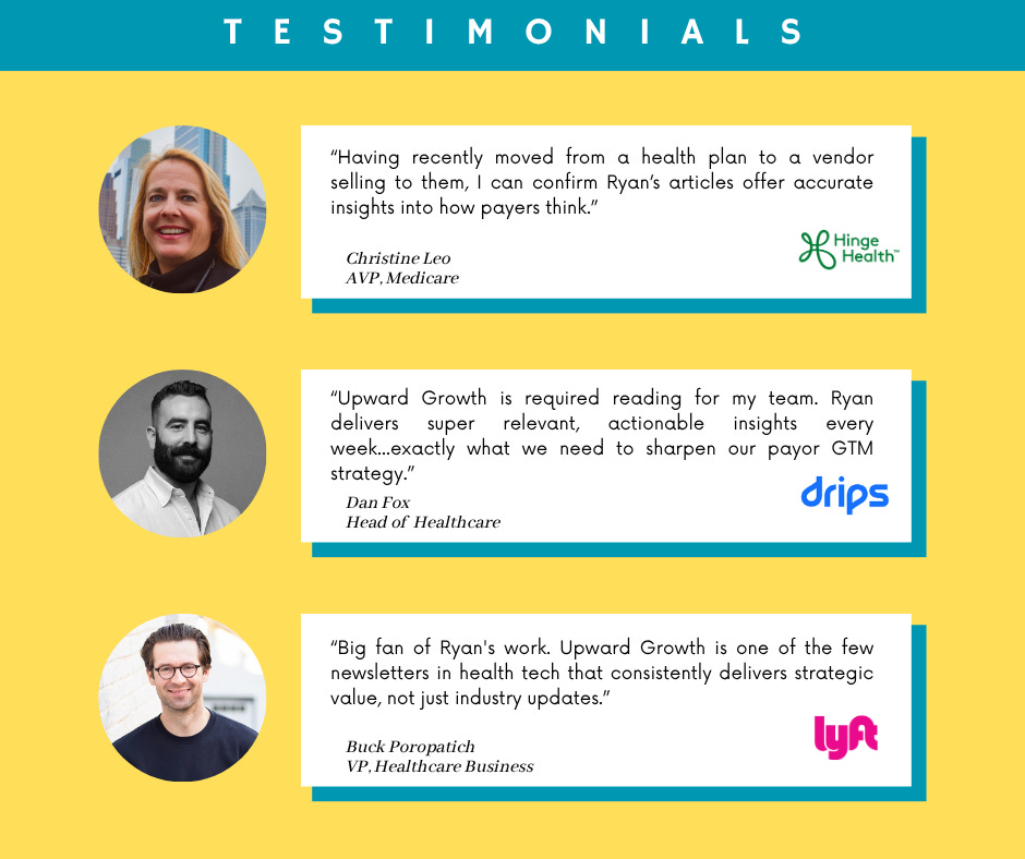 Upward Growth is read each week by health tech leaders — CEOs, GTM executives, and investors shaping how vendors grow in the healthcare market.