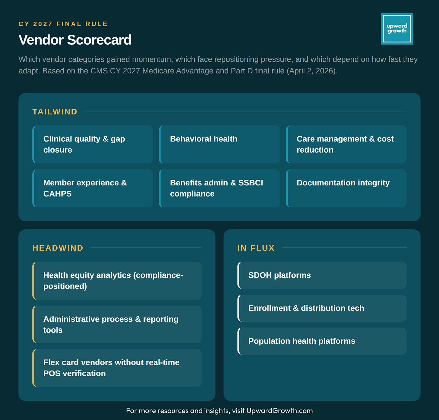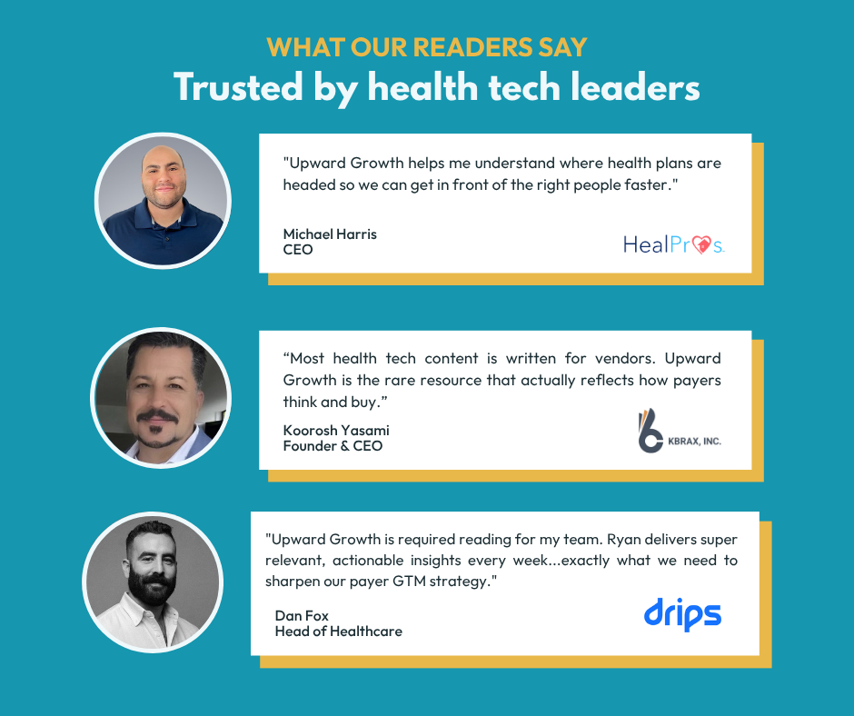 Upward Growth is a health plan market advisory firm. Our weekly newsletter covers payor market strategy, regulatory shifts, and go-to-market insights for health tech vendors, investors, provider organizations, and consultancies competing in the health plan market.