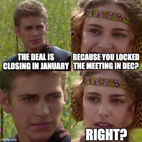 Upgrade to a paid subscription to get the execution playbook below, which details the first two weeks of Q1. You’ll get the sequencing for which deals to prioritize, how to handle bottlenecks when legal or finance stalls, and the conversation structure that builds momentum toward close.