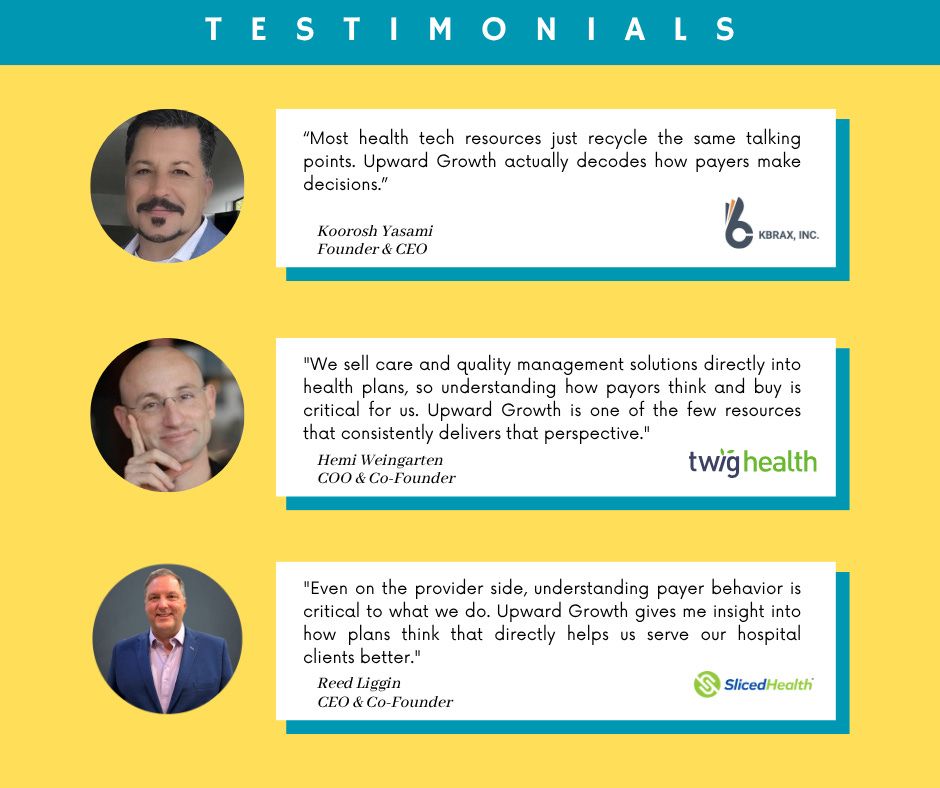 Upward Growth provides health tech leaders with the playbooks and proof to transform complex markets into real growth. Each week, we deliver clear, practical strategies on positioning, messaging, and growth, so leaders can close enterprise deals and build repeatable momentum.