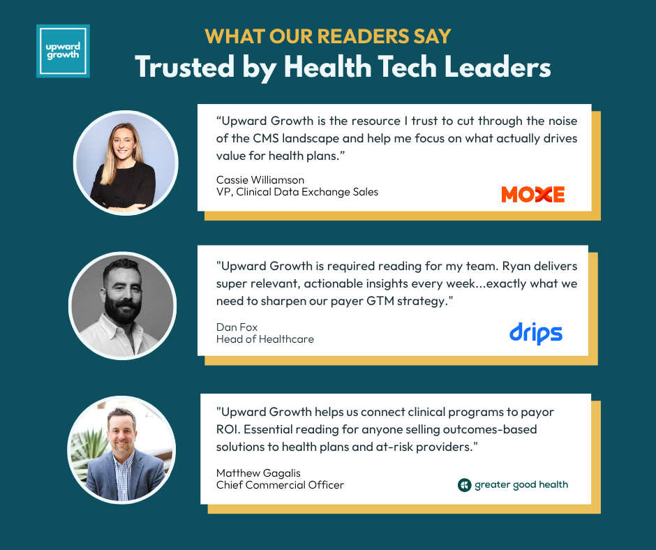 Upward Growth is a health plan market advisory firm. We work with health tech vendors, investors, provider organizations, and management consultancies to build go-to-market strategy around how health plans actually buy, operate, and make decisions. This weekly newsletter is where we share what we’re seeing in the market.